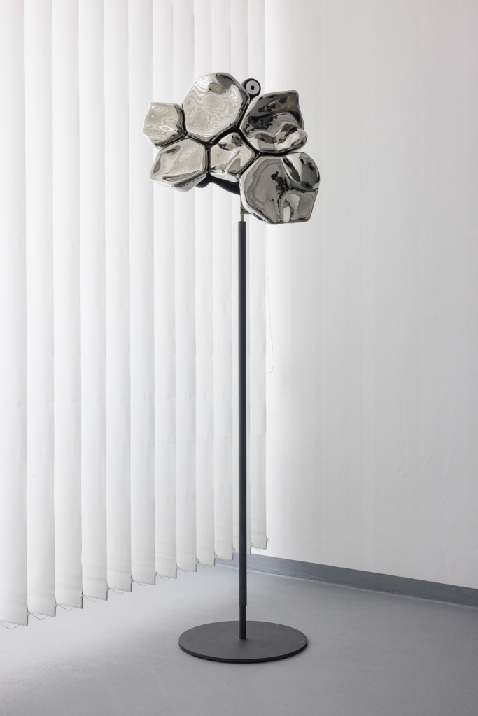 Jan Poš’ work confronts the viewer with something, that we cannot categorise. The task of not trying to understand sounds indeed easier than it is. As a merging between digital rendering and visual imagination, the object holds back its true nature and only speaks to us through the riddle of light: The only thing I’m not is what you see in my reflection. This is what art does to us: it serves as a mirror for our projection; we always see ourselves in it.